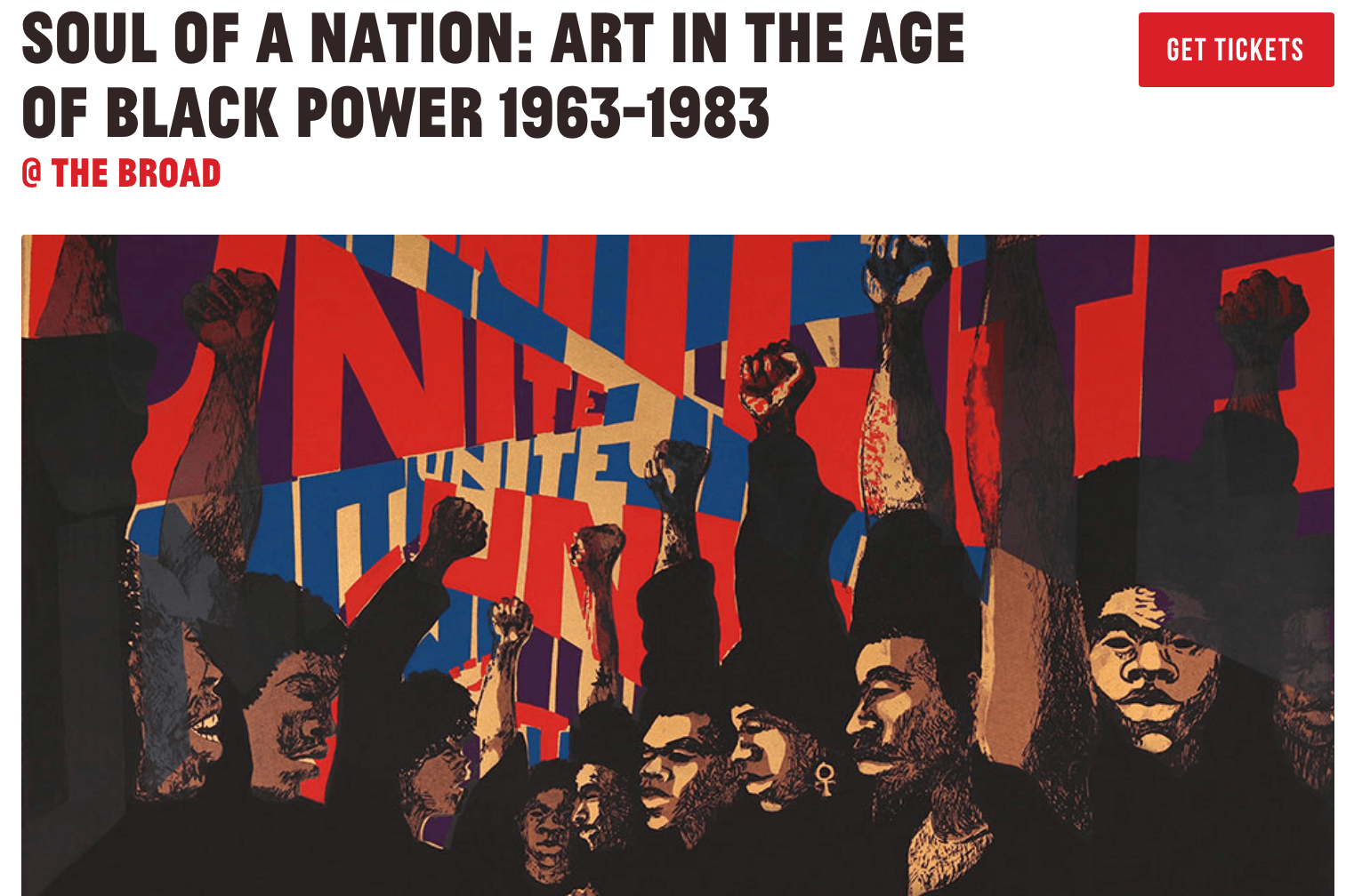 On Soul of a Nation‘s opening day, The Broad will present a day of enriching conversations, artist talks, and poetry, organized by UC Irvine professors Bridget R. Cooks and Frank Wilderson. The event will include compelling conversations between artists featured in the exhibition, such as artists Jae and Wadsworth Jarrell and Gerald Williams with Vida L. Brown (visual arts curator, California African American Museum), among others, as well as renowned art historians and curators like Thelma Golden (director and chief curator, The Studio Museum), Phyllis J. Jackson (associate professor, art history, Pomona College), Kellie Jones (professor, art history and archaeology and the Institute for Research in African American Studies, Columbia University), and Naima J. Keith (deputy director and chief curator, California African American Museum). A reading will be given by distinguished poet Kamau Daáood, author of The Language of Saxophones: Selected Poems of Kamau Daáood and the critically acclaimed album, Leimert Park. Darren Walker, president of the Ford Foundation, will speak in conversation with Academy Award-nominated filmmaker Ava DuVernay. Tickets include one-time, anytime access to Soul of A Nation: Art in the Age of Black Power 1963-1983.