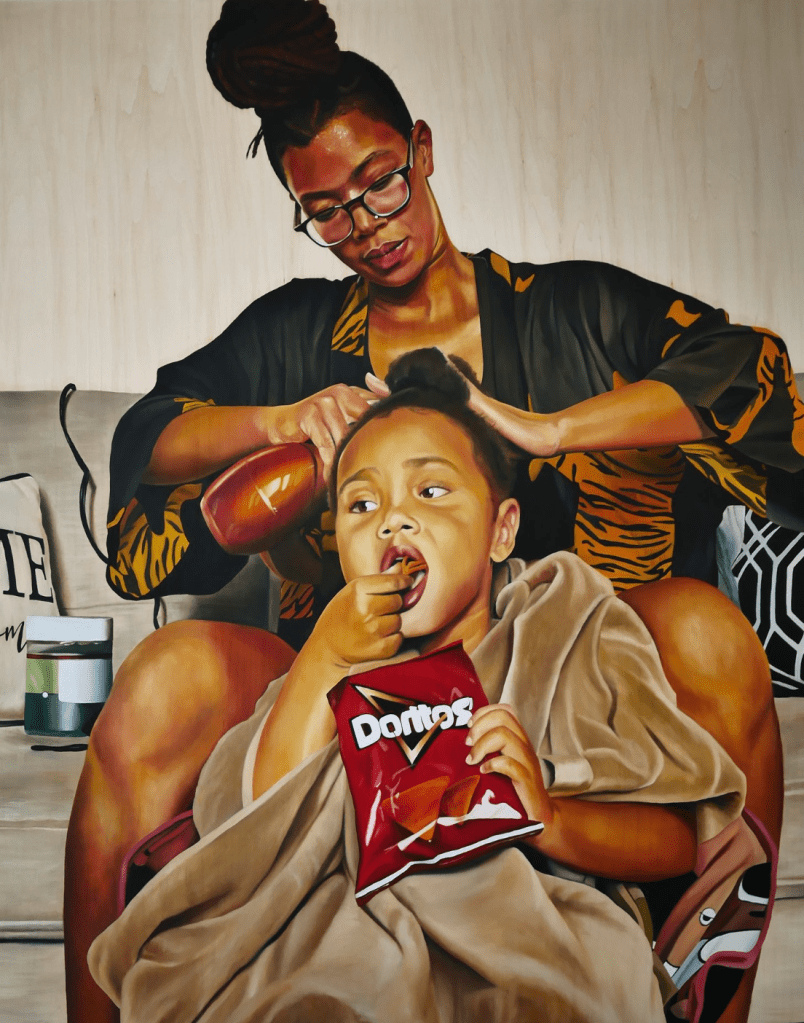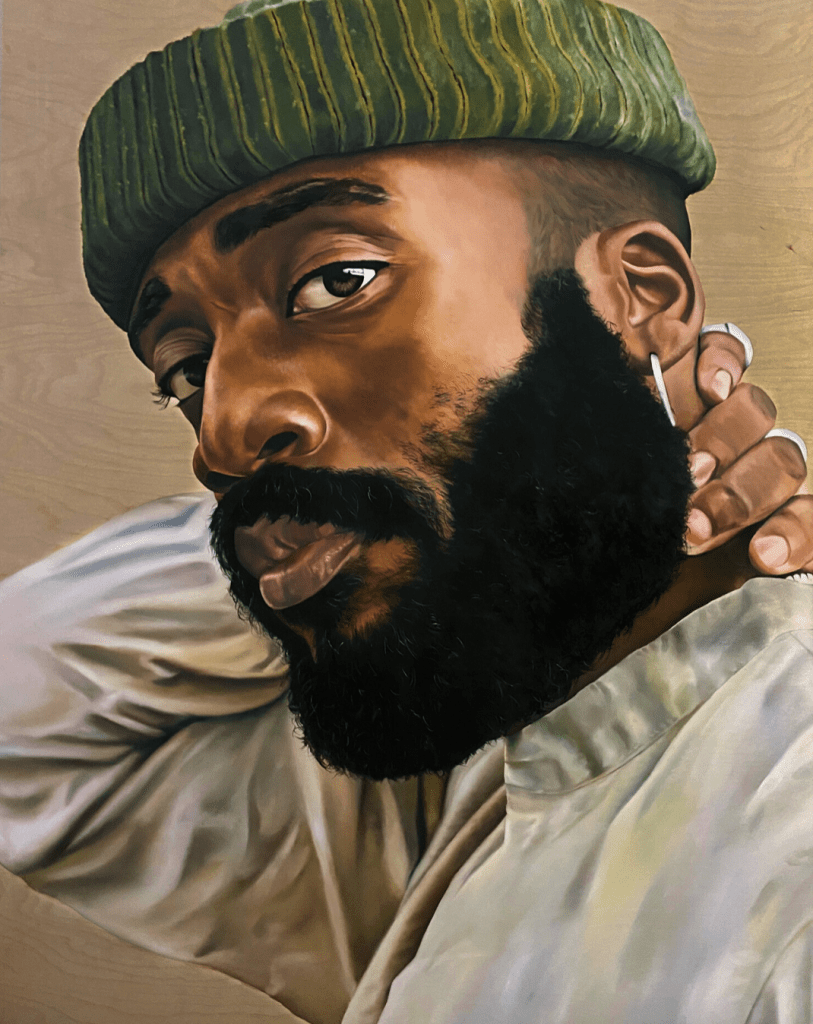 Since beginning oil painting in 2016, he’s continued to expand on ideas and techniques. Shooting film photography, he brings images to life on canvas. Most recently creating a new series titled AFRICAN GIANT, where he highlights the black Kings around him, showcasing the strength in vulnerability.